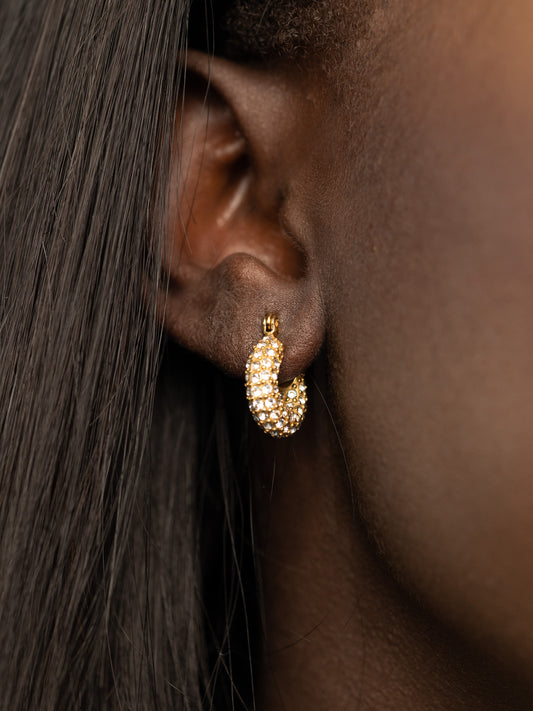 ARI CRYSTAL HUGGIE EARRINGS